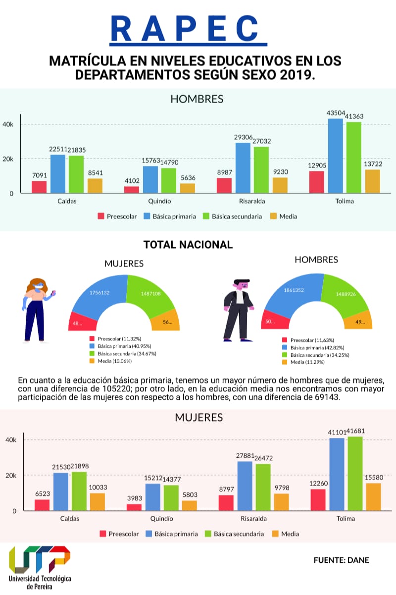 MATRÍCULA EN NIVELES EDUCATIVOS EN LOS DEPARTAMENTOS SEGÚN SEXO 2019